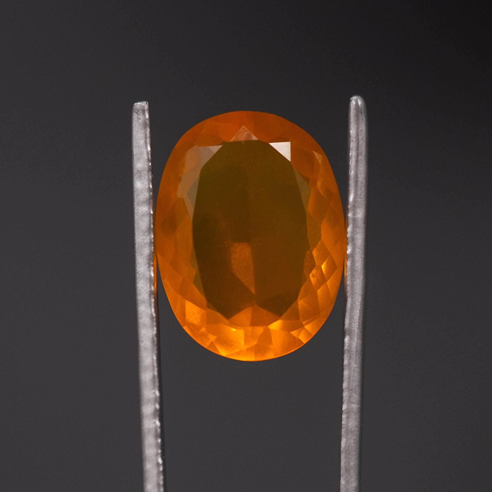 Unleash the captivating allure of this AAA Mexican Fire Opal, a faceted gemstone with an intense orange hue that radiates sophistication and mystery.