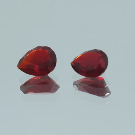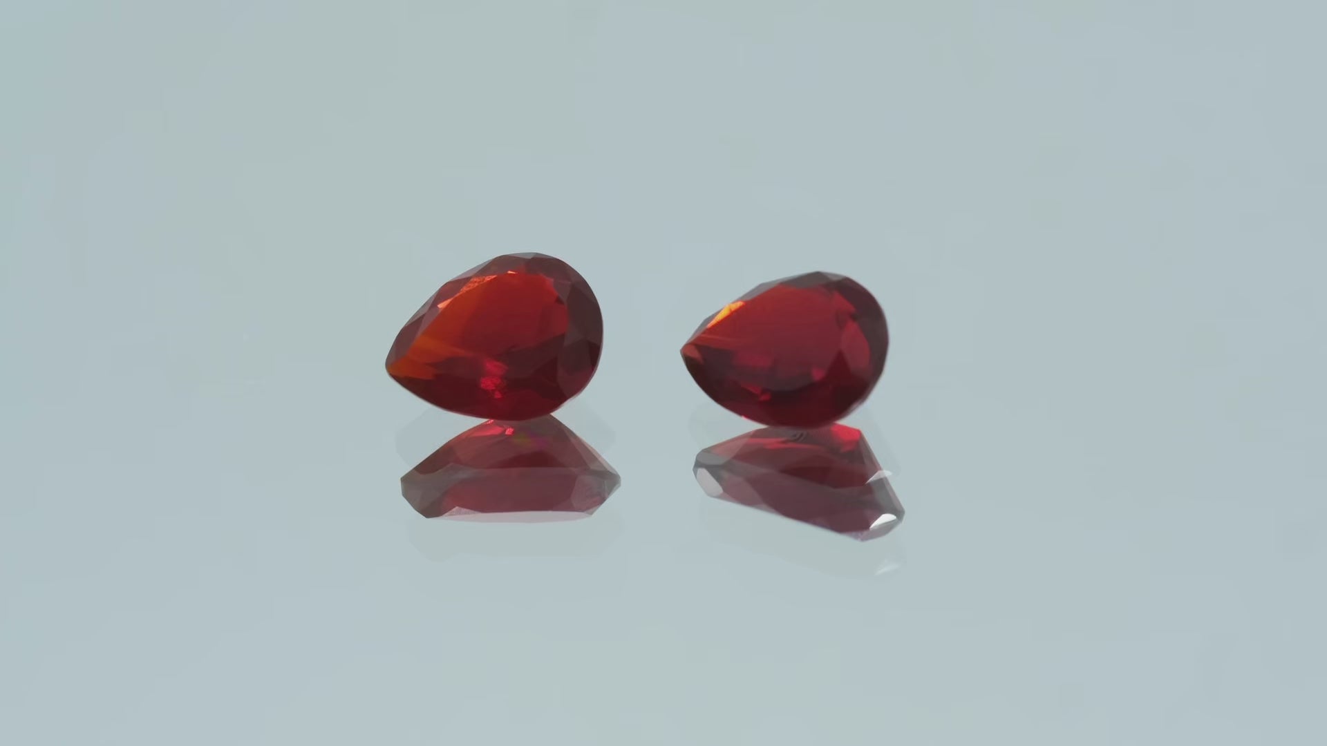 Unleash the captivating allure of these AAA Mexican Fire Opals, a pair of faceted gemstones with an intense red hue that radiates sophistication and mystery.