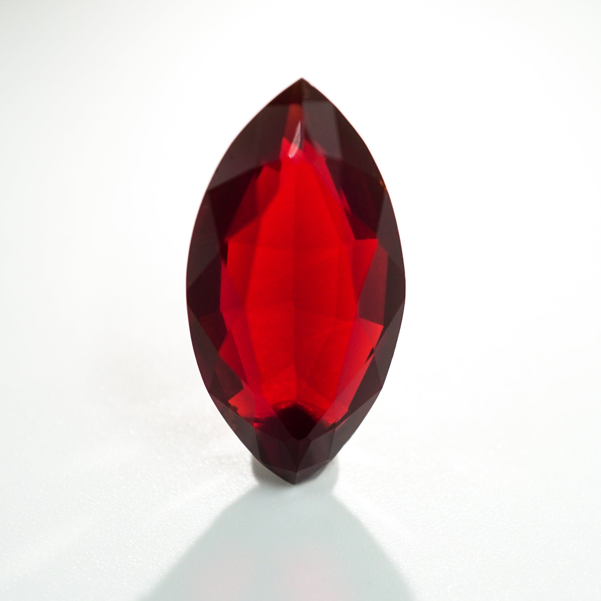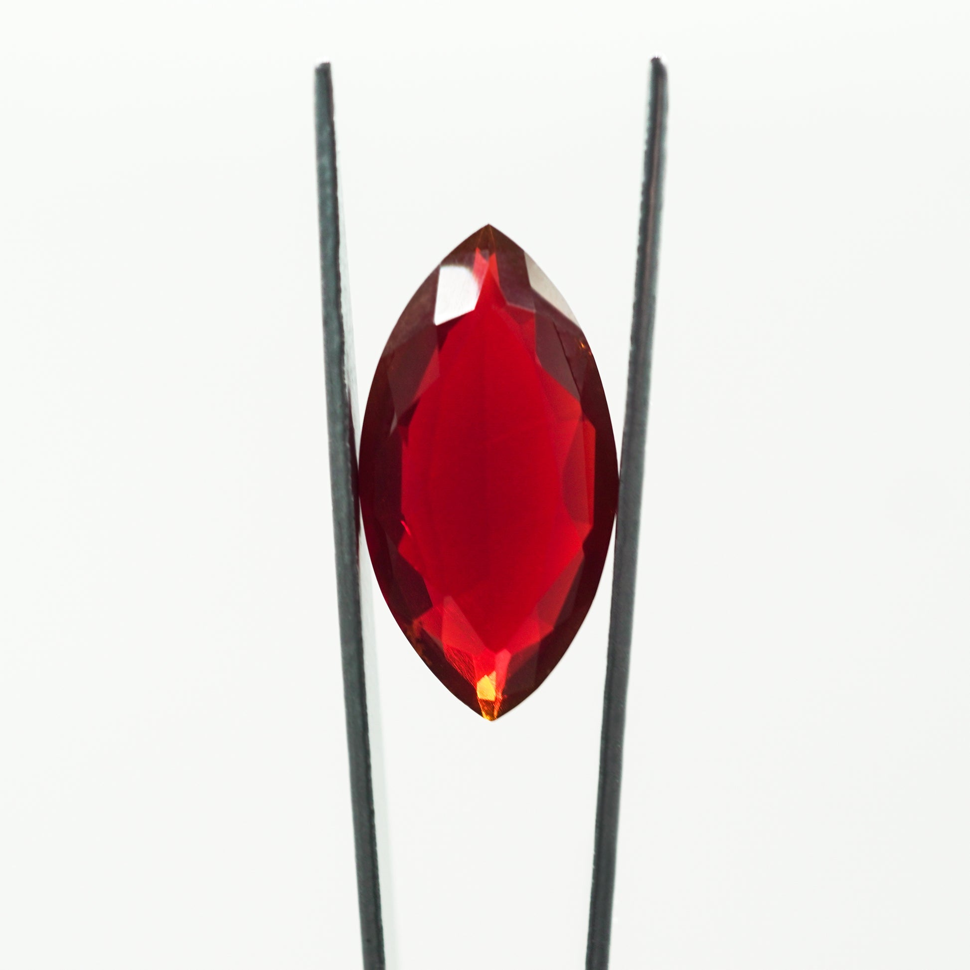 Unleash the captivating allure of this AAA Mexican Fire Opal, a faceted gemstone with an intense red hue that radiates sophistication and mystery.