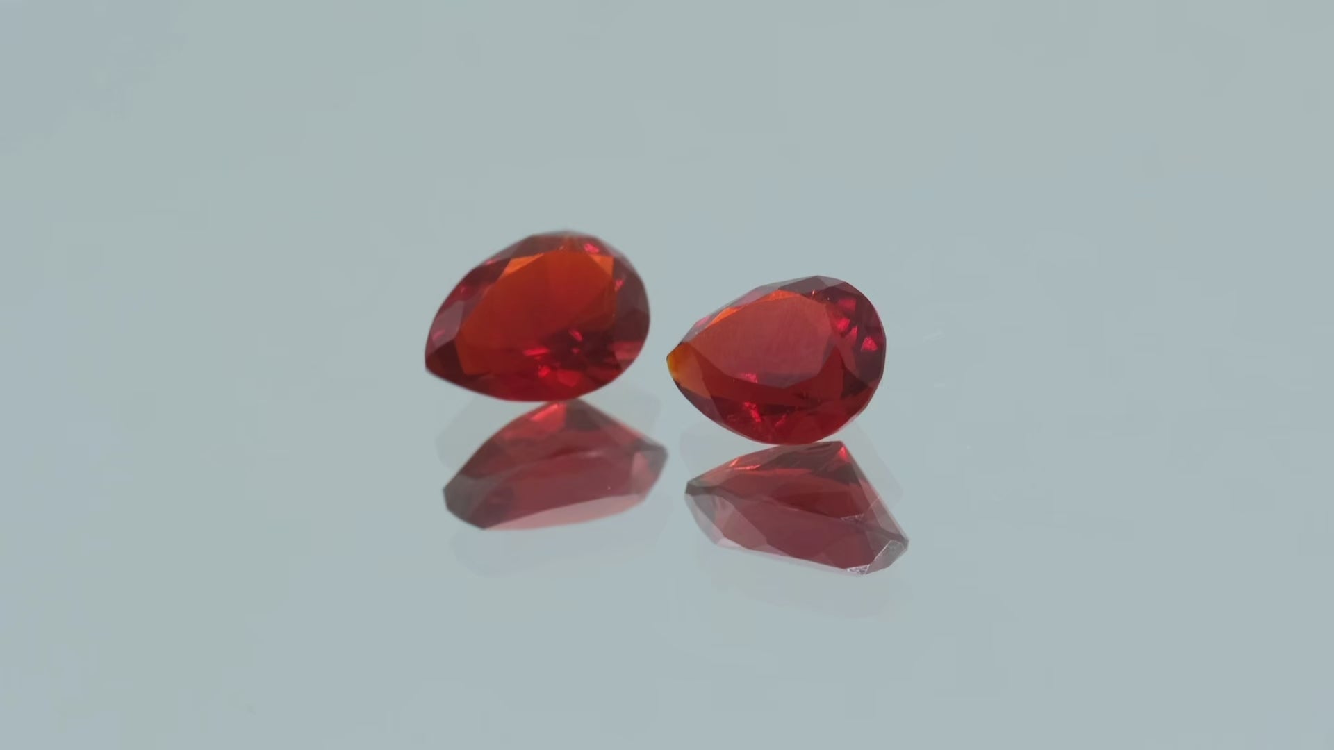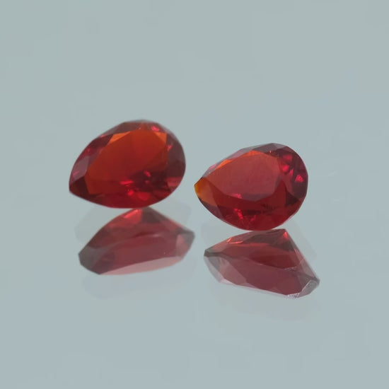 Unleash the captivating allure of these AAA Mexican Fire Opals, a pair of faceted gemstones with an intense red hue that radiates sophistication and mystery.