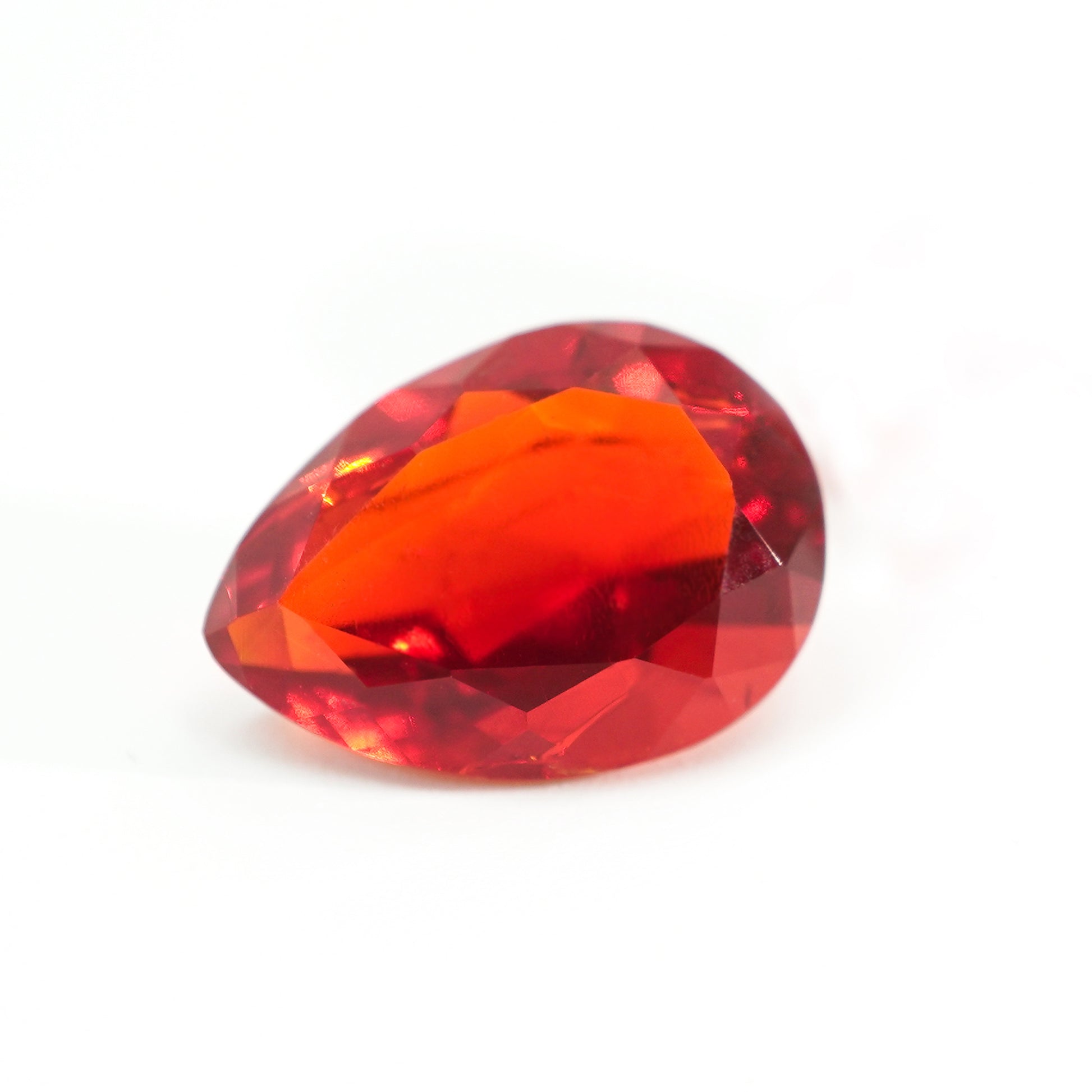 Unleash the captivating allure of this AAA Mexican Fire Opal, a faceted gemstone with an intense red hue that radiates sophistication and mystery.