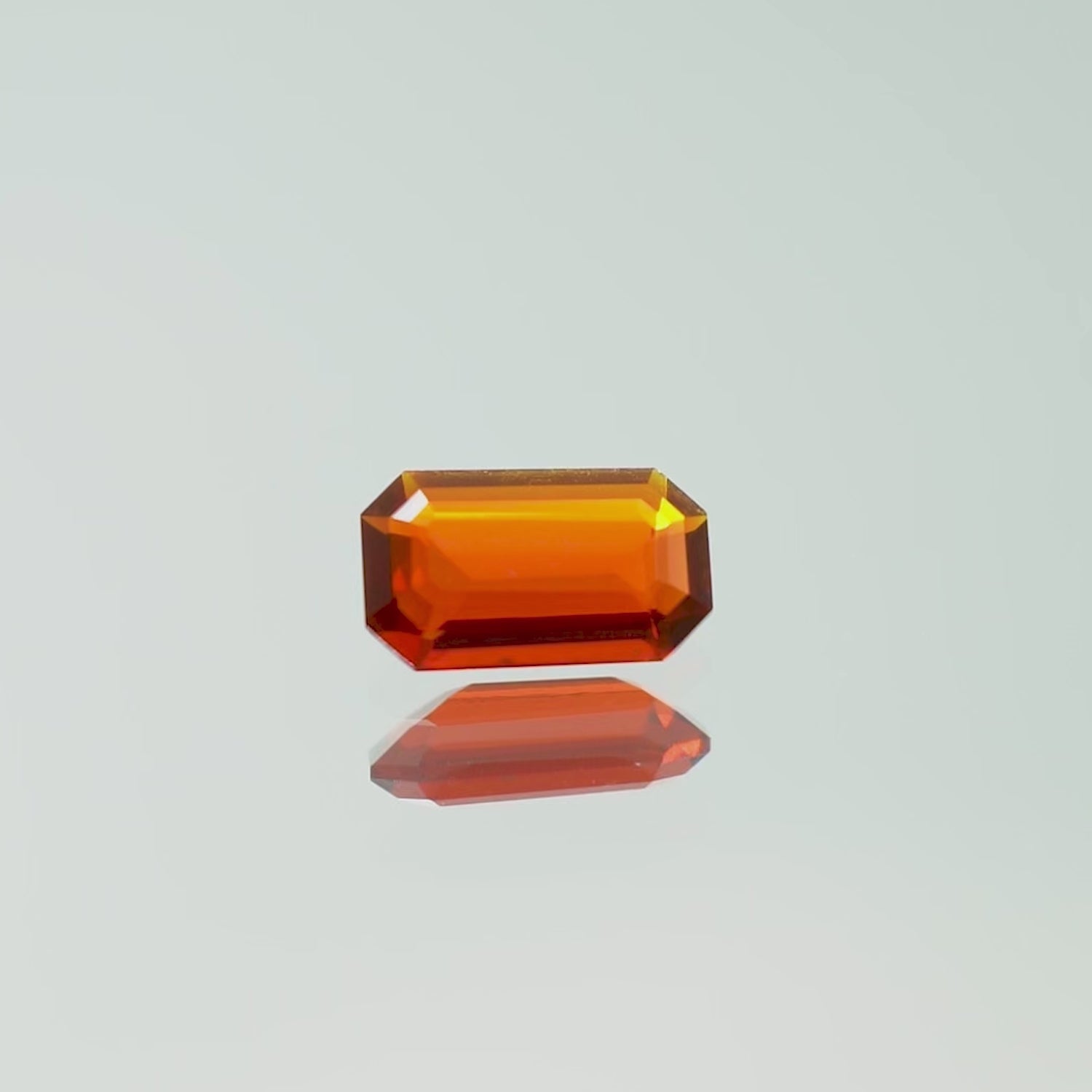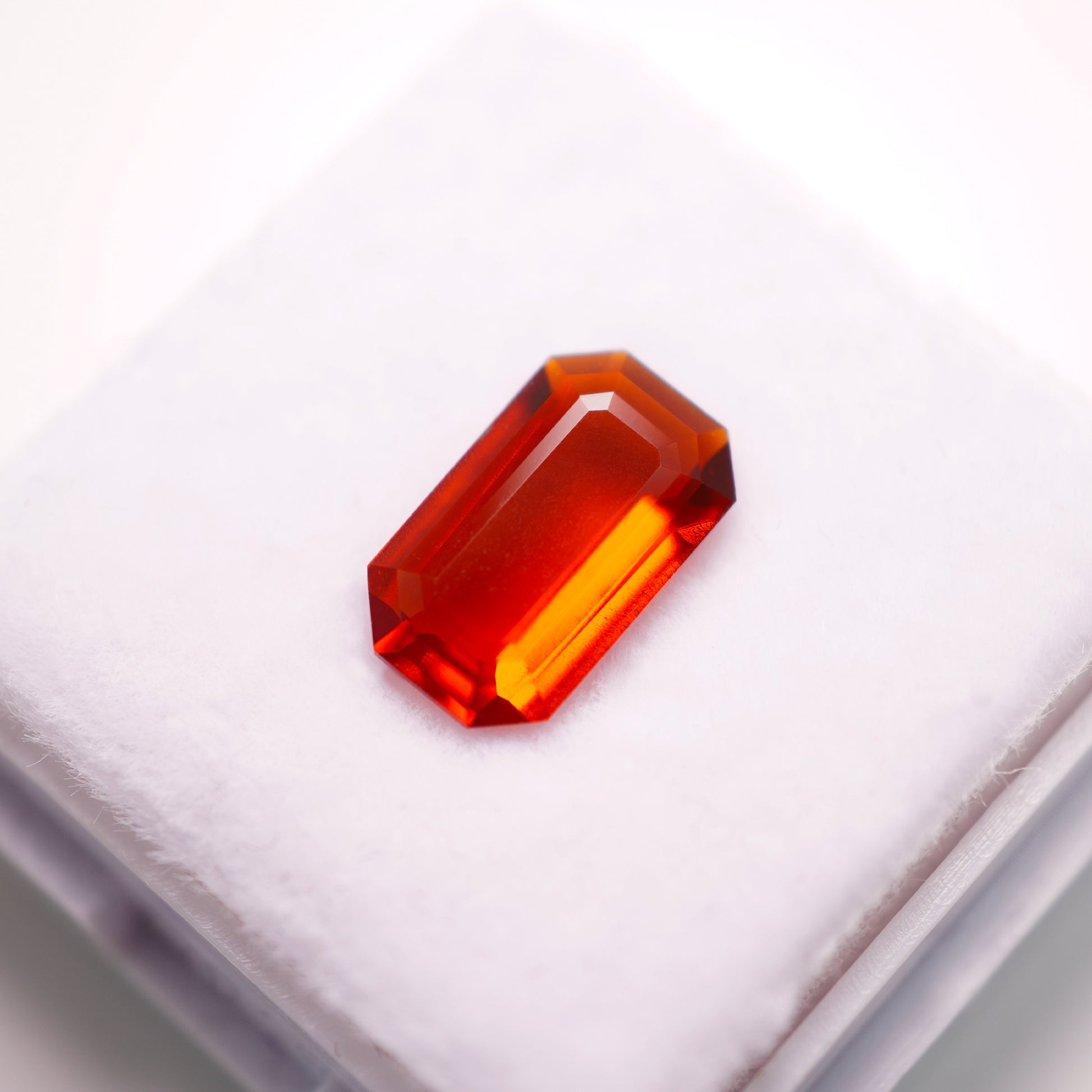 Unleash the captivating allure of this AAA Mexican Fire Opal, a faceted gemstone with an intense red hue that radiates sophistication and mystery.