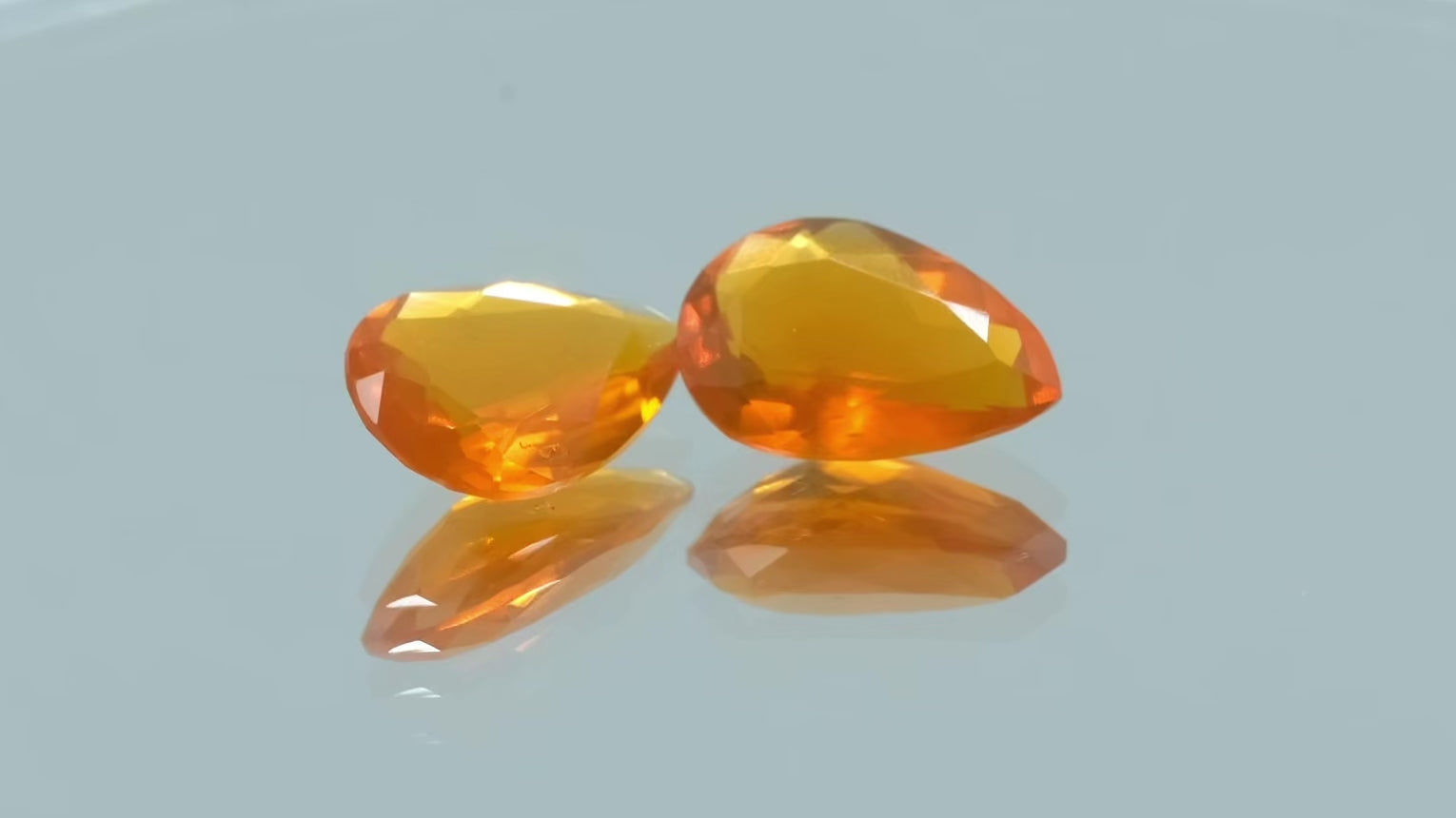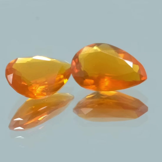 Unleash the captivating allure of these AAA Mexican Fire Opals, a pair of faceted gemstones with an intense orange hue that radiates sophistication and mystery.