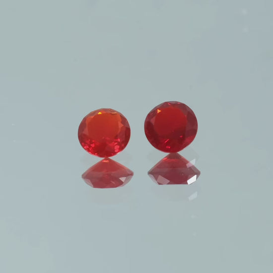 Unleash the captivating allure of these AAA Mexican Fire Opals, a pair of faceted gemstones with an intense red hue that radiates sophistication and mystery.